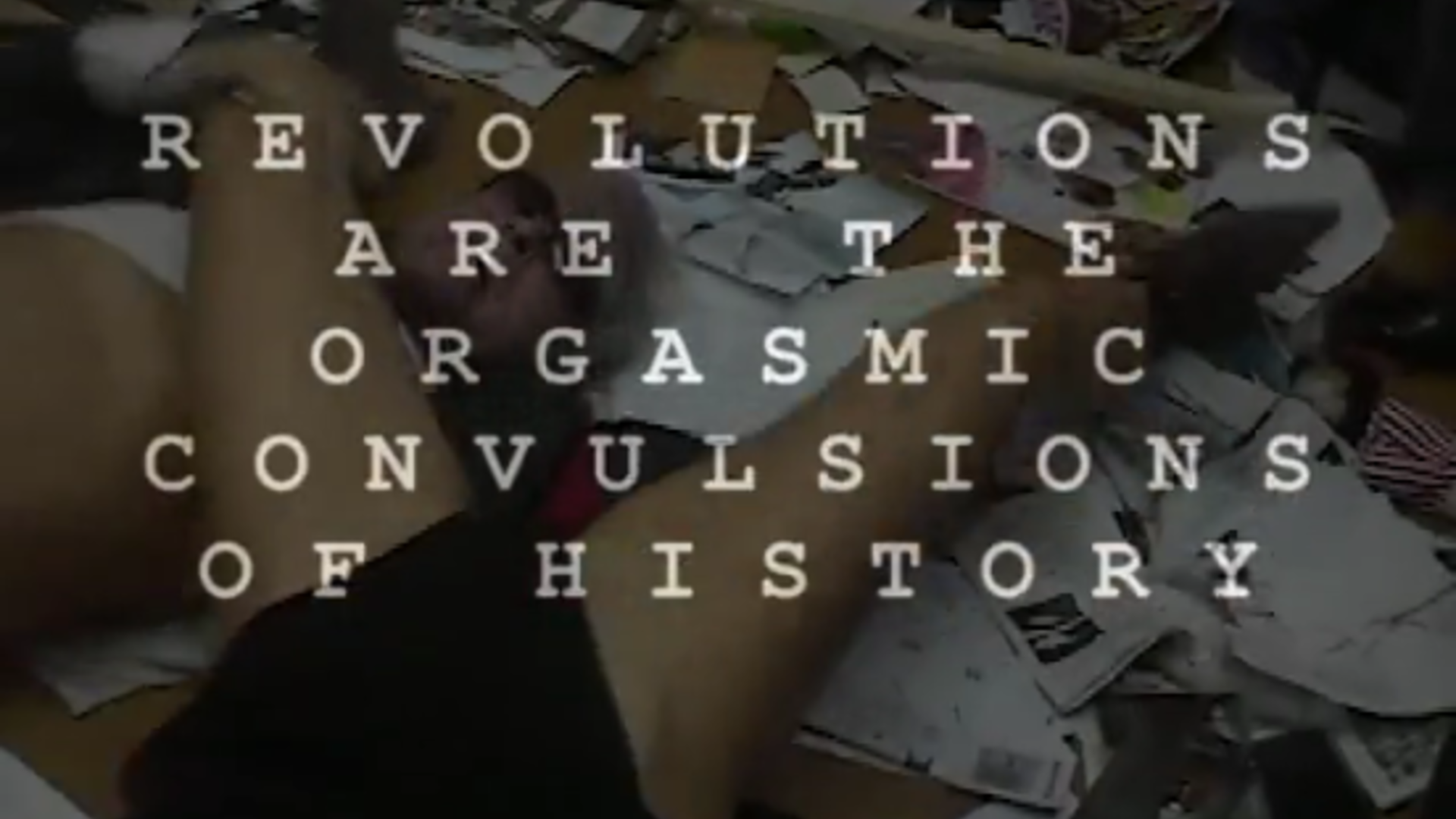 A video that pays homage to the Hungarian revolution of 1956. Kantor describes being dragged to a Paris barbershop by his father 10 years later. On the way, he prays that Paris will be destroyed so that he doesn’t have to get his hair cut. But nothing can be done. When he gets up from the barber’s chair, the end of the world has not come and the sky remains hopelessly blue.